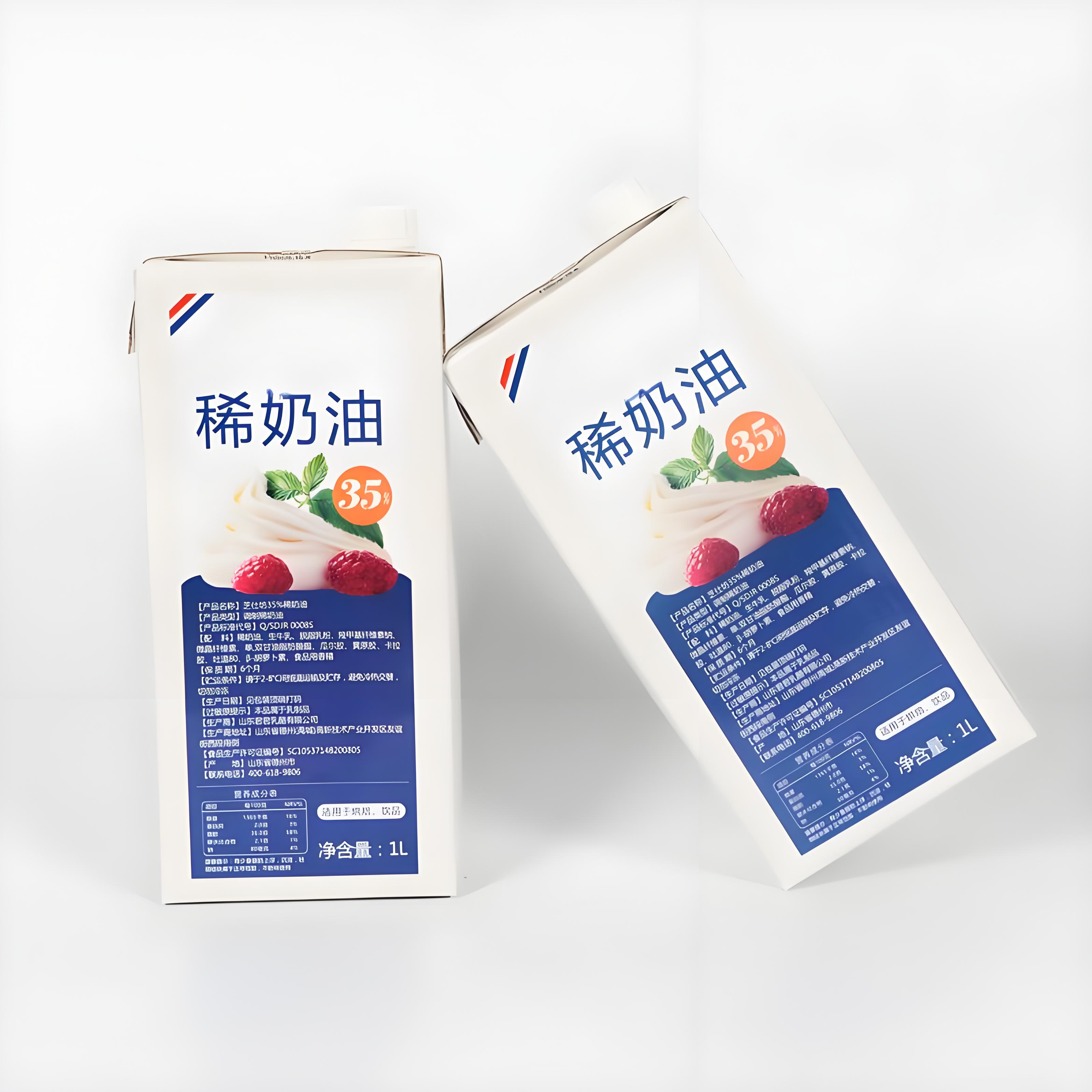 稀奶油1L*12盒装,专为商用设计,适用于蛋糕裱花、烘焙原料及冰淇淋制作,易打发,冷藏储存,全年热卖,品质保证。